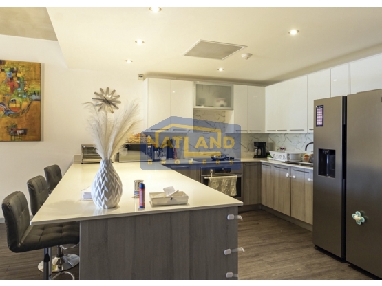 Cocina Abierta con amplios gabinetes integrada con sala y comedor